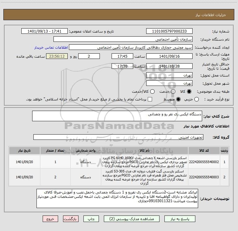 توضیحات خریدار:ایرانکد مشابه است-2دستگاه ایکس ری نفررو و 1 دستگاه چمدانی باحمل،نصب و آموزش-صرفا کالای تولیدایران و دارای گواهینامه افتا و تاییدیه از سازمان انرژی اتمی بابت اشعه ایکس-مشخصات فنی موردنیاز پیوست میباشد-09103011321حجازی