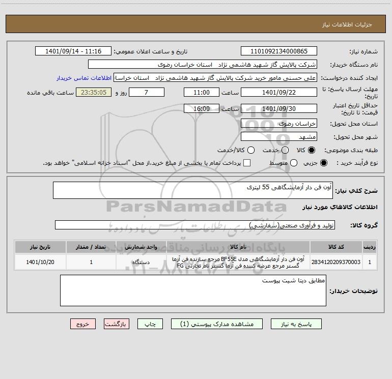 نام دستگاه خریدار:شرکت پالایش گاز شهید هاشمی نژاد استان خراسان رضوی