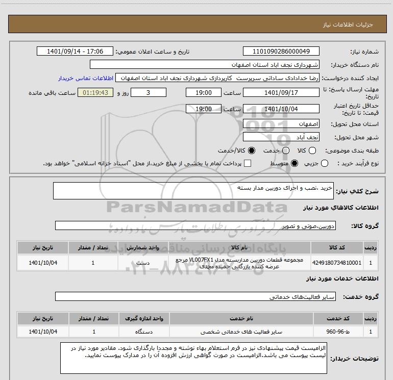 شرح کلی نیاز: خرید ،نصب و اجرای دوربین مدار بسته