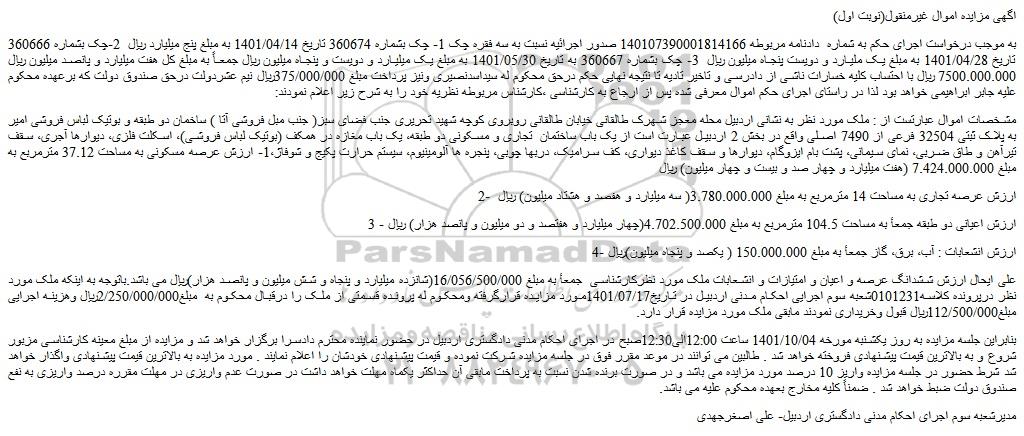 اگهی مزایده اموال غیرمنقول(نوبت اول)