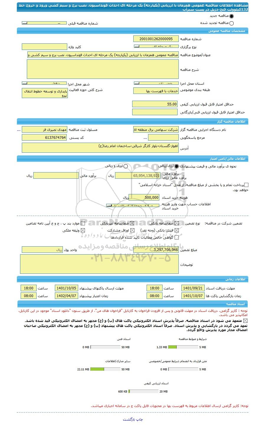 | مبلغ تضمین | 3,297,706,946 | واحد پول | ریال |