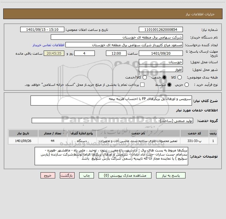 شرح کلی نیاز: سرویس و اورهال پل بریکرهای FP با احتساب هزینه بیمه