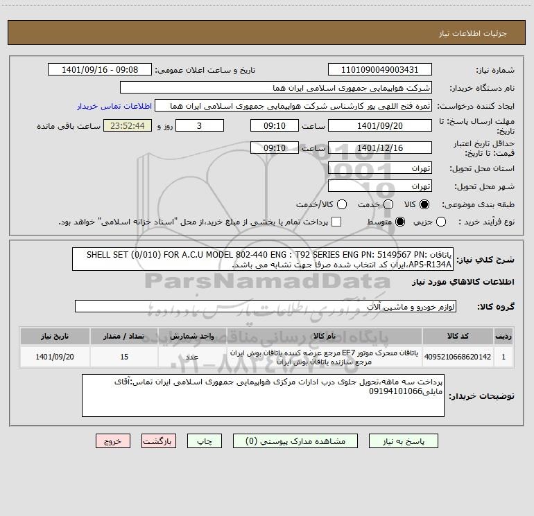 نام دستگاه خریدار:شرکت هواپیمایی جمهوری اسلامی ایران هما