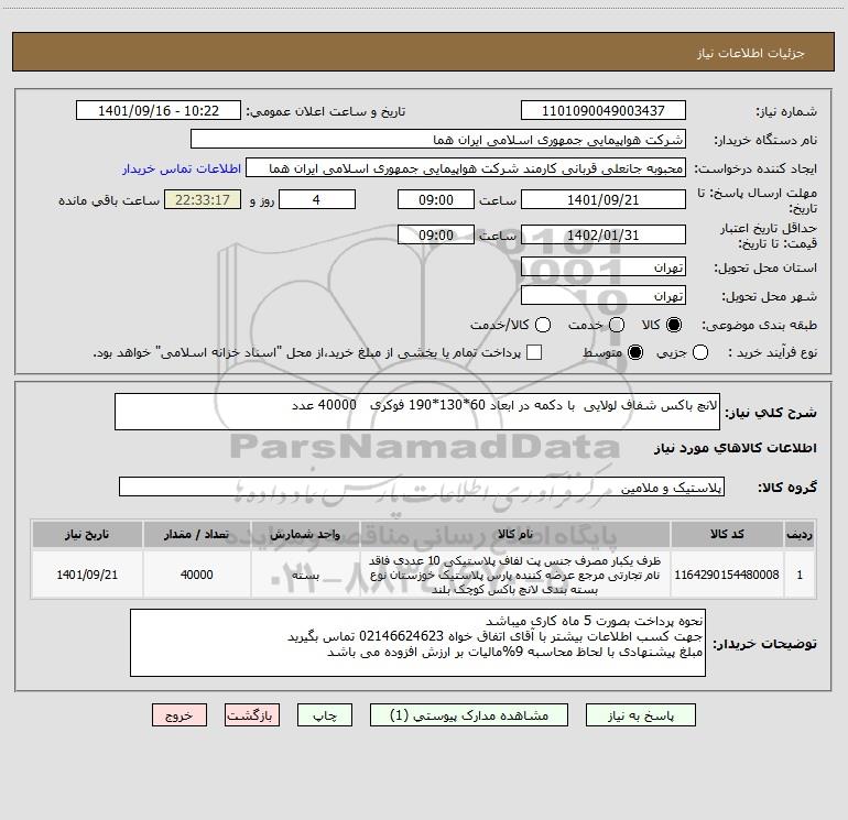 نام دستگاه خریدار:شرکت هواپیمایی جمهوری اسلامی ایران هما