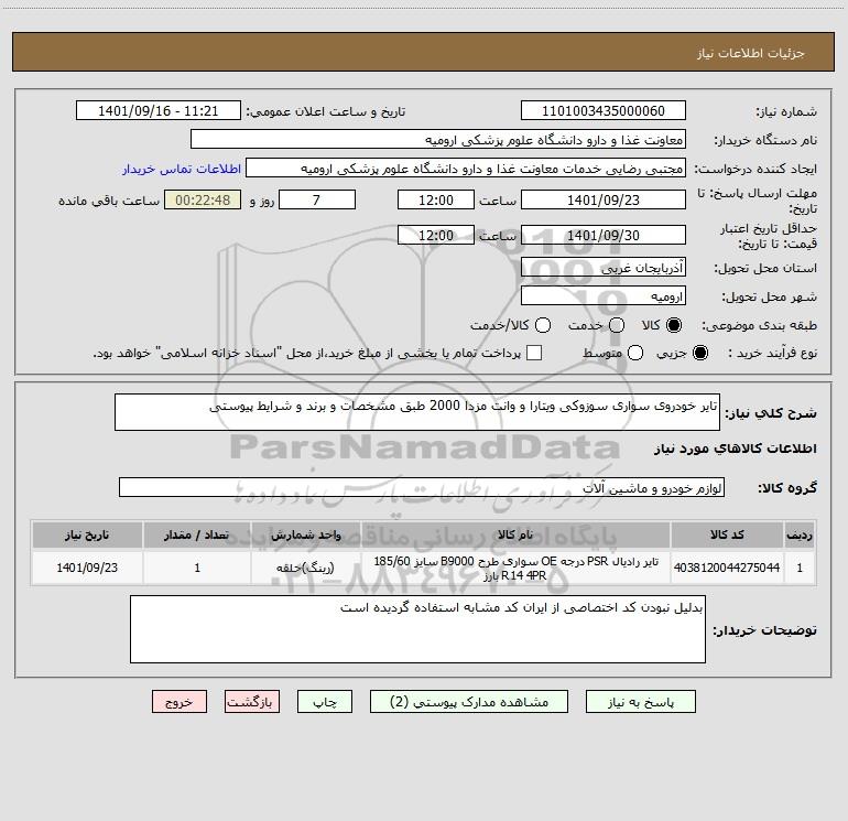 نام دستگاه خریدار:معاونت غذا و دارو دانشگاه علوم پزشکی ارومیه