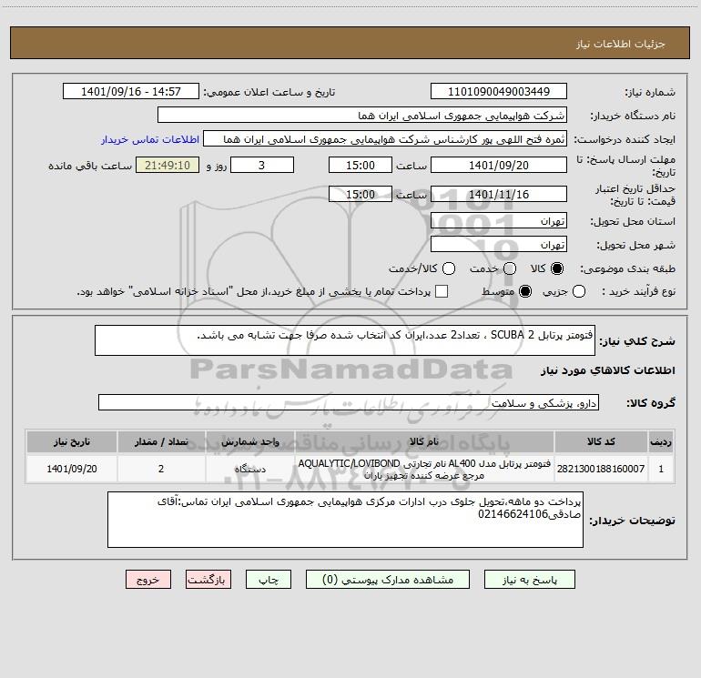 نام دستگاه خریدار:شرکت هواپیمایی جمهوری اسلامی ایران هما