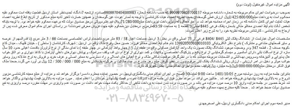 اگهی مزایده اموال غیرمنقول (نوبت دوم)