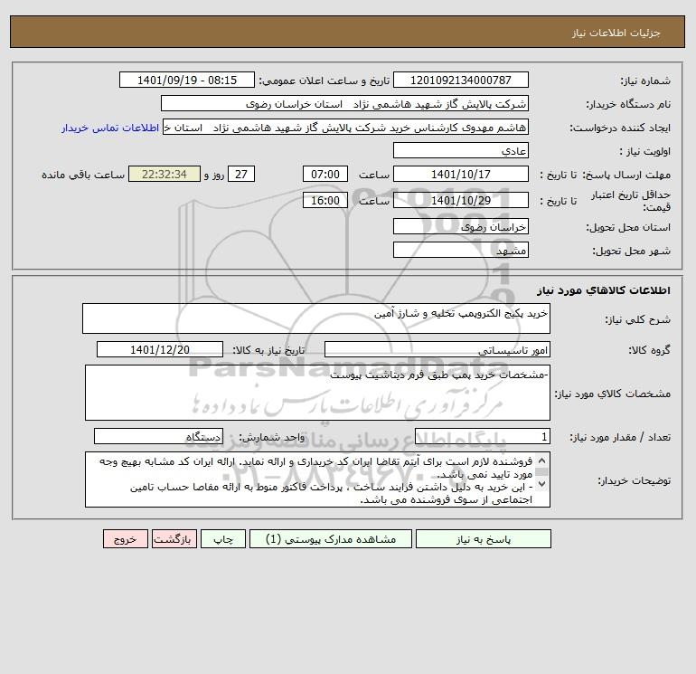 نام دستگاه خریدار:شرکت پالایش گاز شهید هاشمی نژاد استان خراسان رضوی