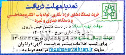 تمدید مهلت خرید دستگاه های لرزه نگاری، لوله یاب الکترومغناطیسی و دستگاه حفاری , تمدید مهلت خرید دستگاه های لرزه نگاری، لوله یاب الکترومغناطیسی و دستگاه حفاری