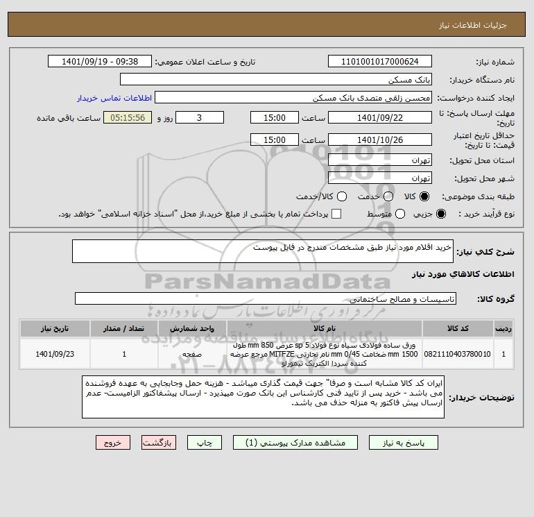 شرح کلی نیاز: خرید اقلام مورد نیاز طبق مشخصات مندرج در فایل پیوست