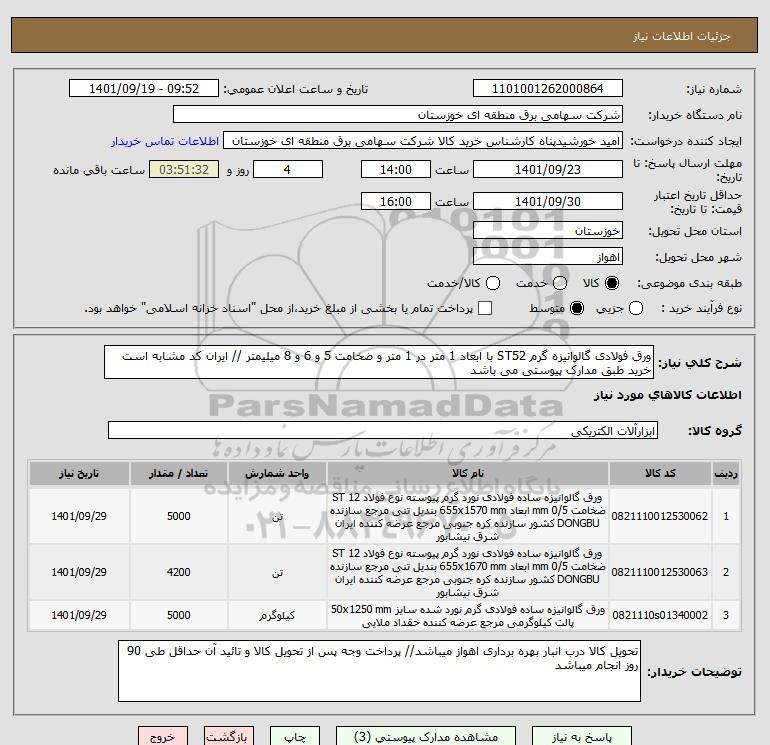 استعلام ورق فولادی گالوانیزه گرم ST52 با ابعاد 1 متر در 1 متر و ضخامت 5 و 6 و 8 میلیمتر // ایران کد مشابه است خرید طبق مدارک پیوستی می باشد, استعلام ورق فولادی گالوانیزه گرم ST52 با ابعاد 1 متر در 1 متر و ضخامت 5 و 6 و 8 میلیمتر // ایران کد مشابه است خرید طبق مدارک پیوستی می باشد