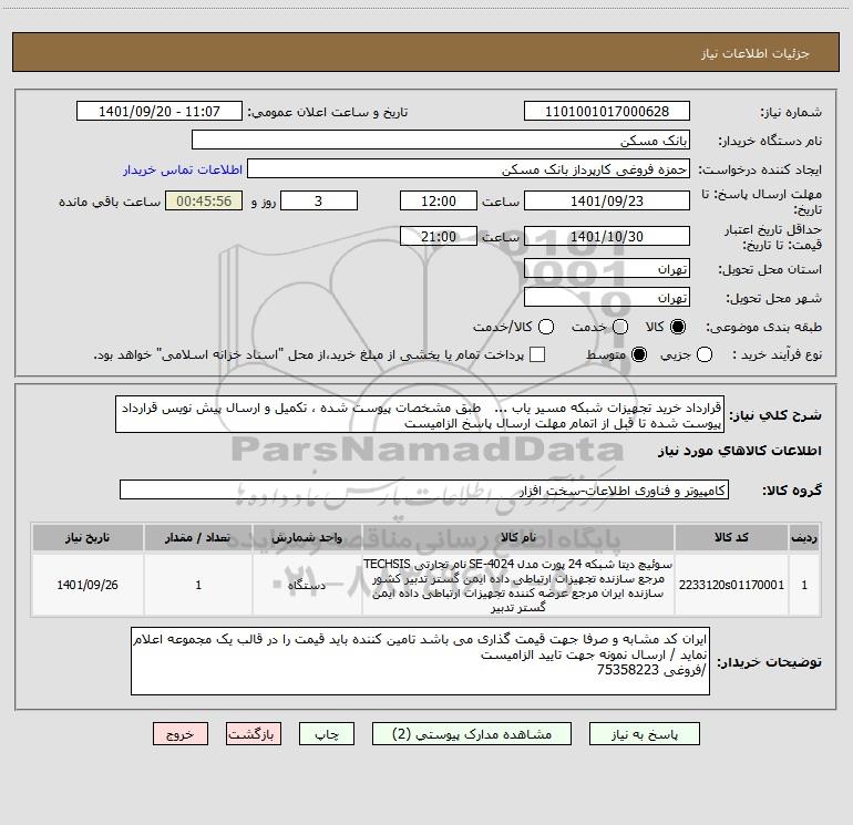 شرح کلی نیاز: قرارداد خرید تجهیزات شبکه مسیر یاب ... طبق مشخصات پیوست شده ، تکمیل و ارسال پیش نویس قرارداد پیوست شده تا قبل از اتمام مهلت ارسال پاسخ الزامیست