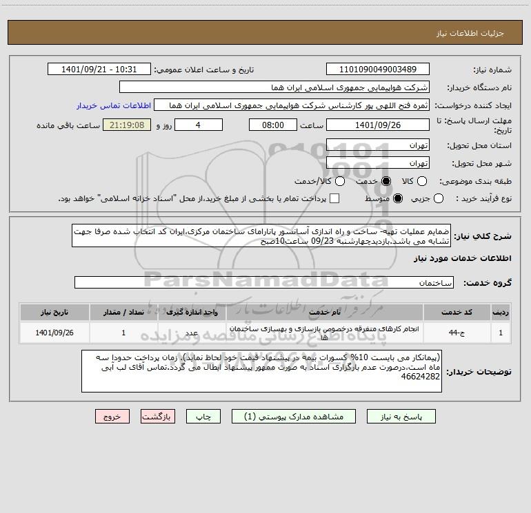 نام دستگاه خریدار:شرکت هواپیمایی جمهوری اسلامی ایران هما