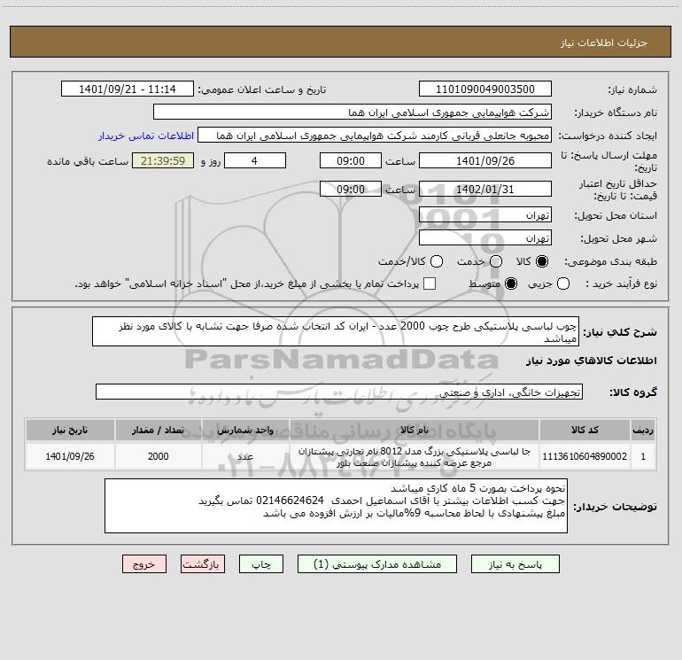 شرح کلی نیاز: چوب لباسی پلاستیکی طرح چوب 2000 عدد - ایران کد انتخاب شده صرفا جهت تشابه با کالای مورد نظر میباشد
