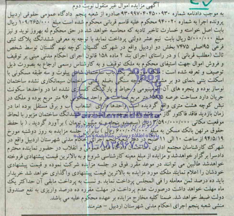 مزایده پلاک ثبتی, مزایده,پلاک ثبتی