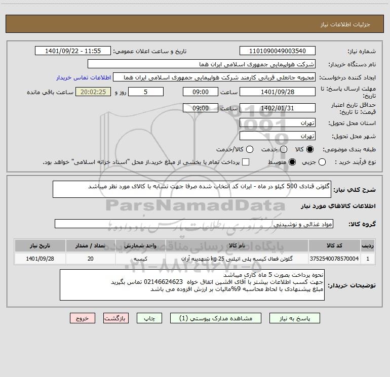 نام دستگاه خریدار:شرکت هواپیمایی جمهوری اسلامی ایران هما