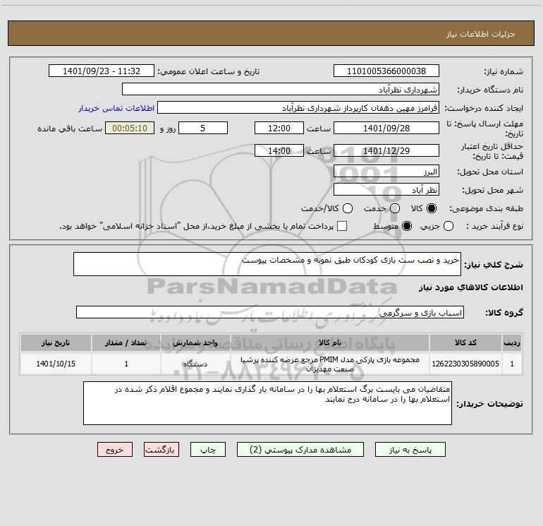شرح کلی نیاز: خرید و نصب ست بازی کودکان طبق نمونه و مشخصات پیوست