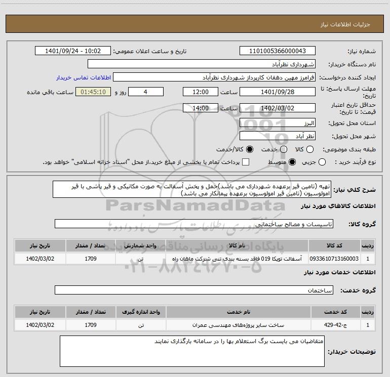 نام دستگاه خریدار:شهرداری نظرآباد