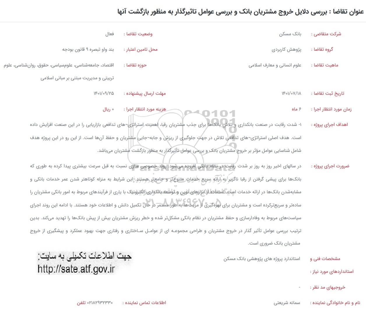 عنوان تقاضا : بررسی دلایل خروج مشتریان بانک و بررسی عوامل تاثیرگذار به منظور بازگشت آنها