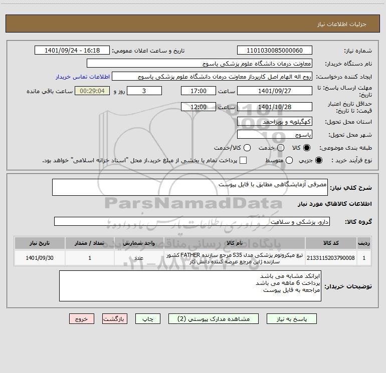 نام دستگاه خریدار:معاونت درمان دانشگاه علوم پزشکی یاسوج