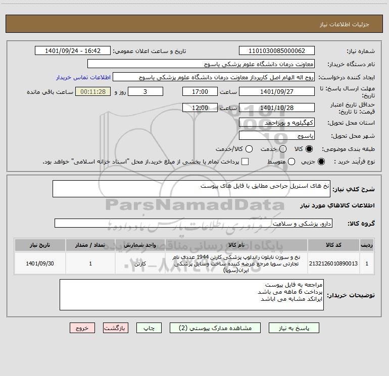 شرح کلی نیاز: نخ های استریل جراحی مطابق با فایل های پیوست