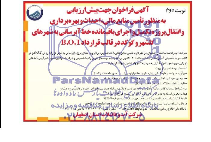 فراخوان تامین منابع مالی ، احداث و بهره برداری و انتقال پروژه تکمیل و اجرای باقیمانده خط آبرسانی.. ؟