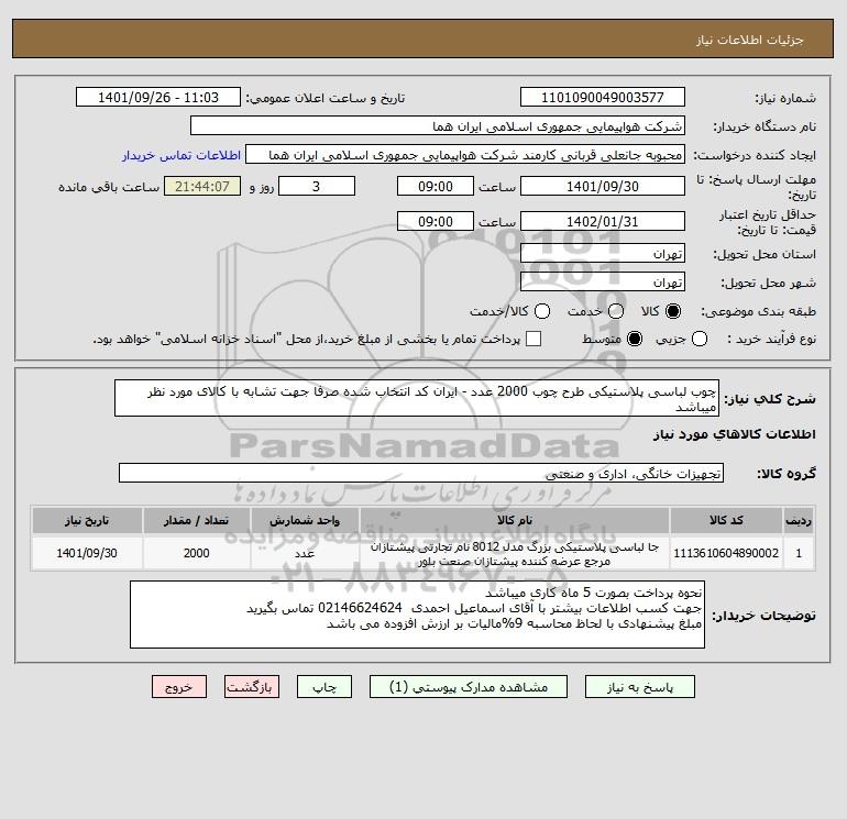 نام دستگاه خریدار:شرکت هواپیمایی جمهوری اسلامی ایران هما