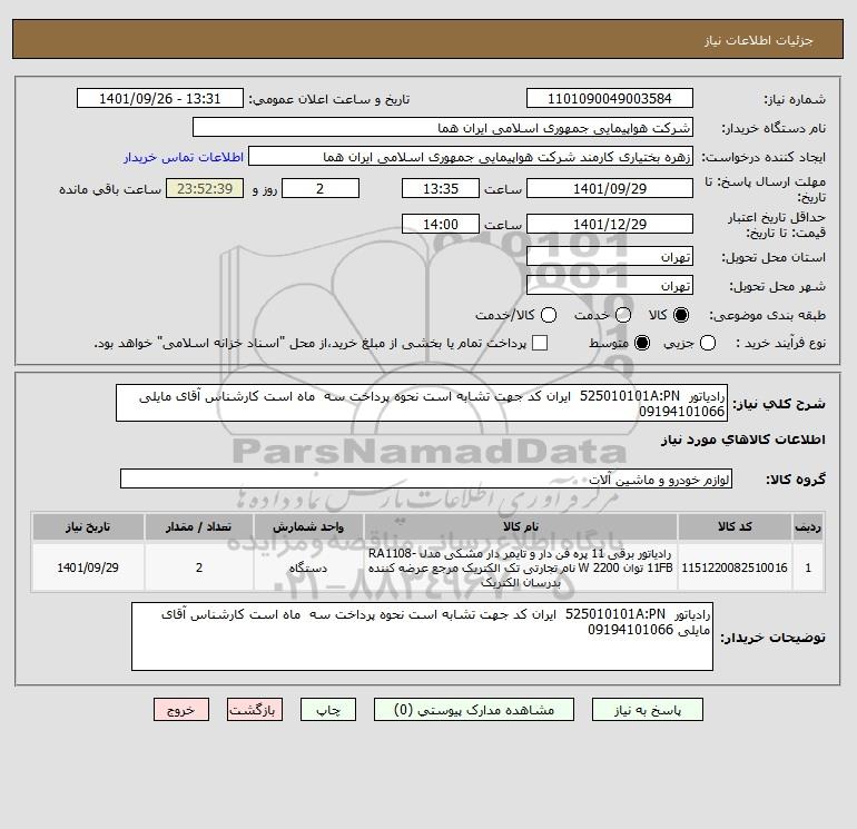 نام دستگاه خریدار:شرکت هواپیمایی جمهوری اسلامی ایران هما
