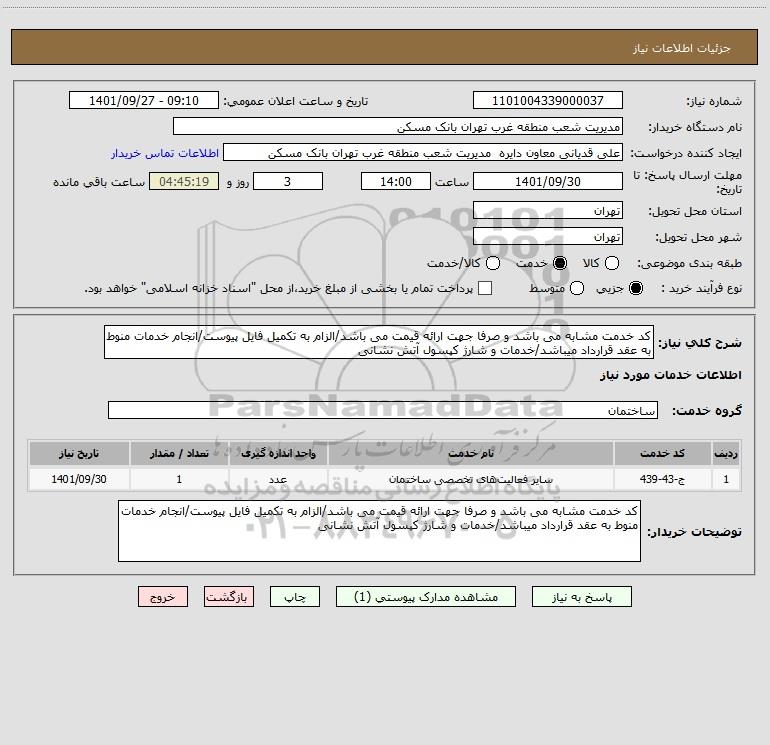 نام دستگاه خریدار:مدیریت شعب منطقه غرب تهران بانک مسکن