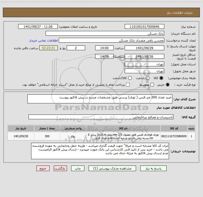 شرح کلی نیاز: خرید تعداد 300 متر فنس ( توری) پرسی طبق مشخصات مندرج در پیش فاکتور پیوست