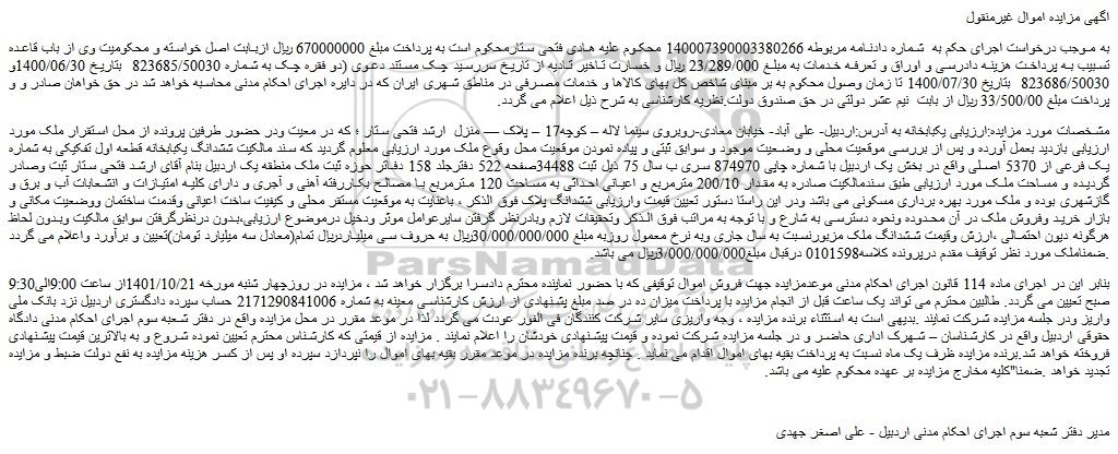 اگهی مزایده اموال غیرمنقول