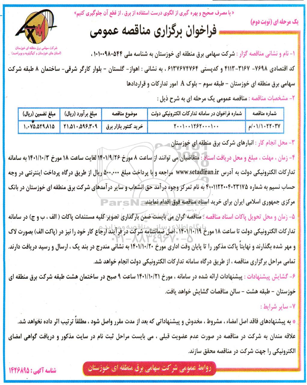 | 1022037/ 01/ م | 2001001262000100 | خرید کنتور بازار برق | 21.510.596.309 | 1.075.529.815 |