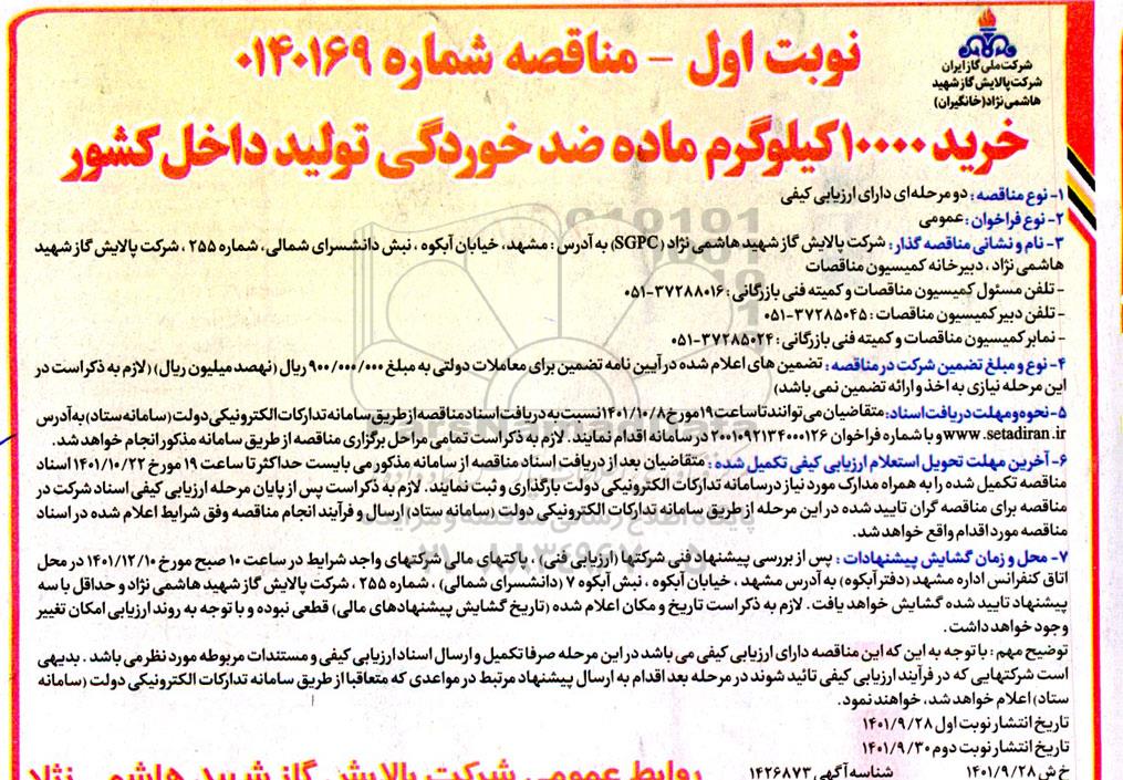 آگهی مناقصه خرید 10000 کیلوگرم ماده ضدخوردگی تولید داخل کشور, آگهی مناقصه خرید 10000 کیلوگرم ماده ضدخوردگی تولید داخل کشور