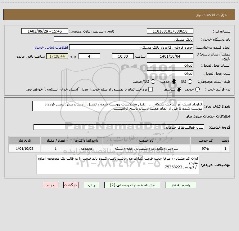 شرح کلی نیاز: قرارداد تست زیر ساخت شبکه ... طبق مشخصات پیوست شده ، تکمیل و ارسال پیش نویس قرارداد پیوست شده تا قبل از اتمام مهلت ارسال پاسخ الزامیست