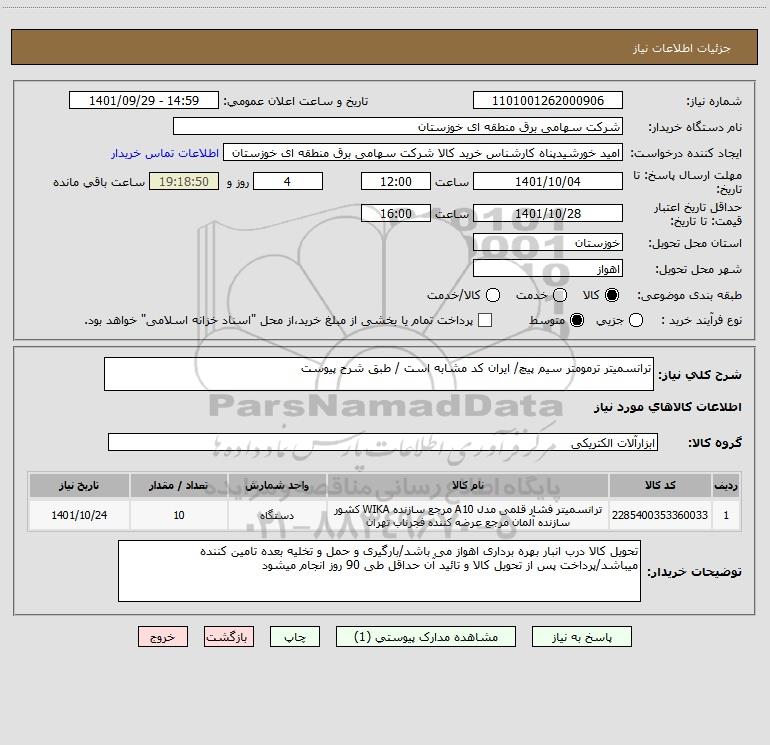 نام دستگاه خریدار:شرکت سهامی برق منطقه ای خوزستان