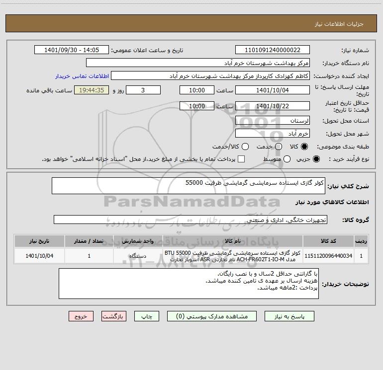 شرح کلی نیاز: کولر گازی ایستاده سرمایشی گرمایشی ظرفیت 55000