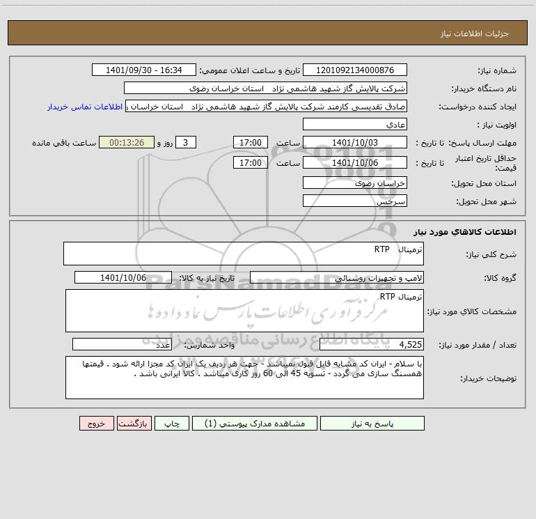 مشخصات کالای مورد نیاز: ترمینال RTP