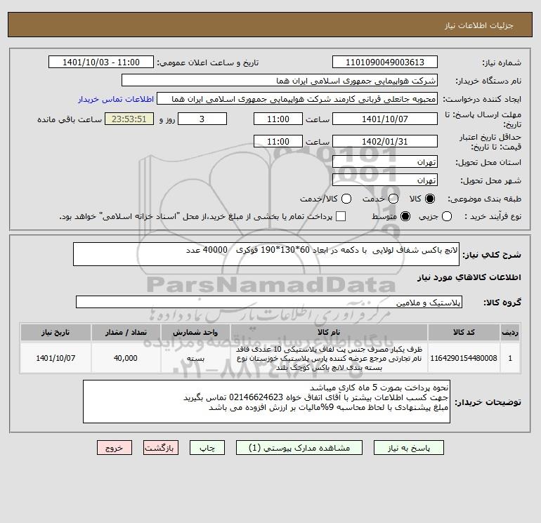 نام دستگاه خریدار:شرکت هواپیمایی جمهوری اسلامی ایران هما