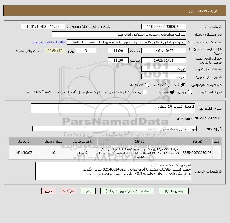 نام دستگاه خریدار:شرکت هواپیمایی جمهوری اسلامی ایران هما