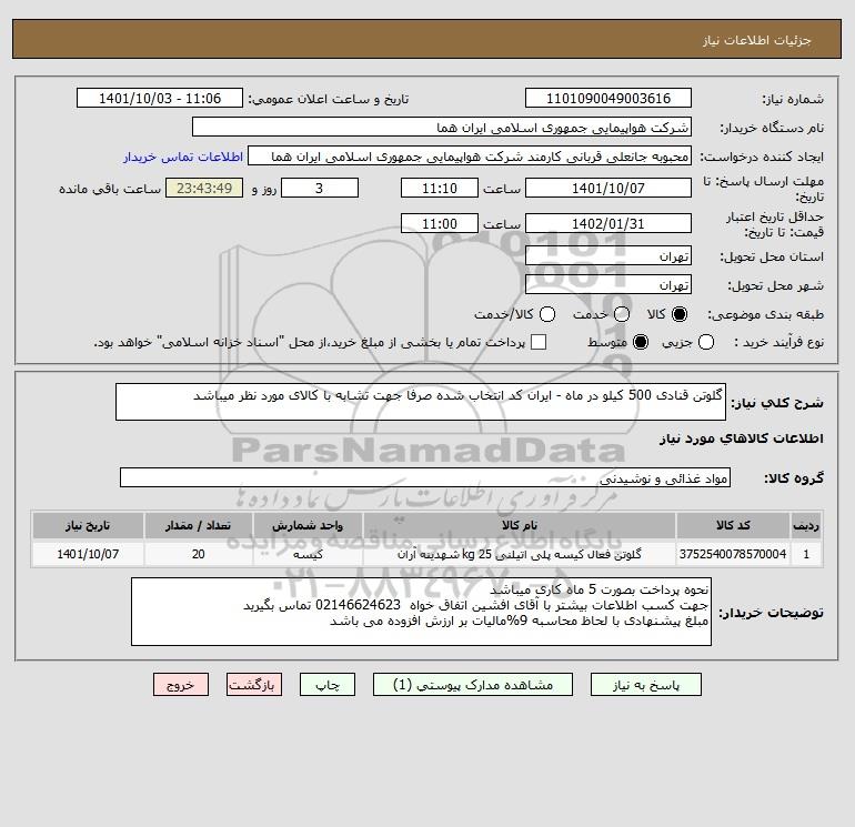 نام دستگاه خریدار:شرکت هواپیمایی جمهوری اسلامی ایران هما