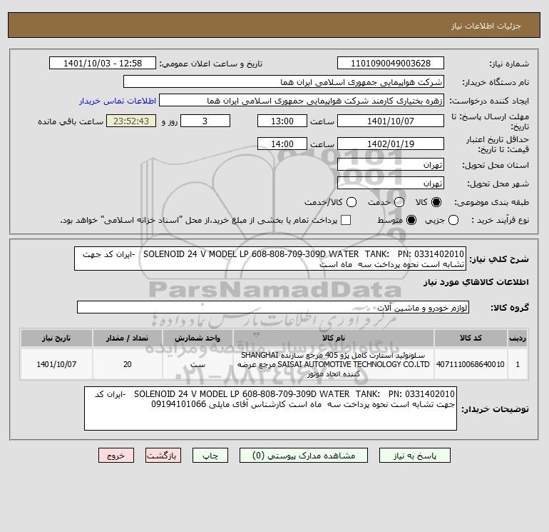 نام دستگاه خریدار:شرکت هواپیمایی جمهوری اسلامی ایران هما