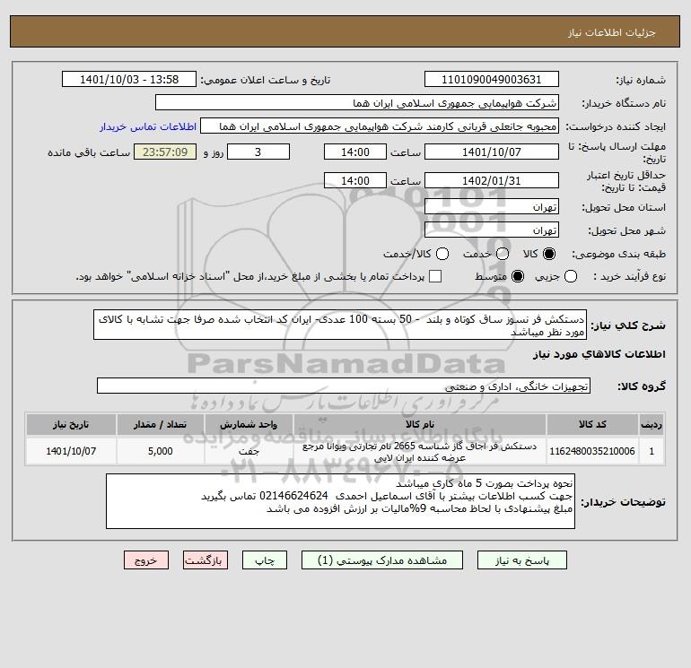 نام دستگاه خریدار:شرکت هواپیمایی جمهوری اسلامی ایران هما