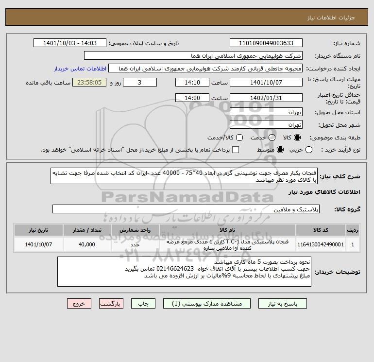 نام دستگاه خریدار:شرکت هواپیمایی جمهوری اسلامی ایران هما