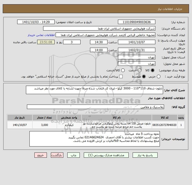 نام دستگاه خریدار:شرکت هواپیمایی جمهوری اسلامی ایران هما