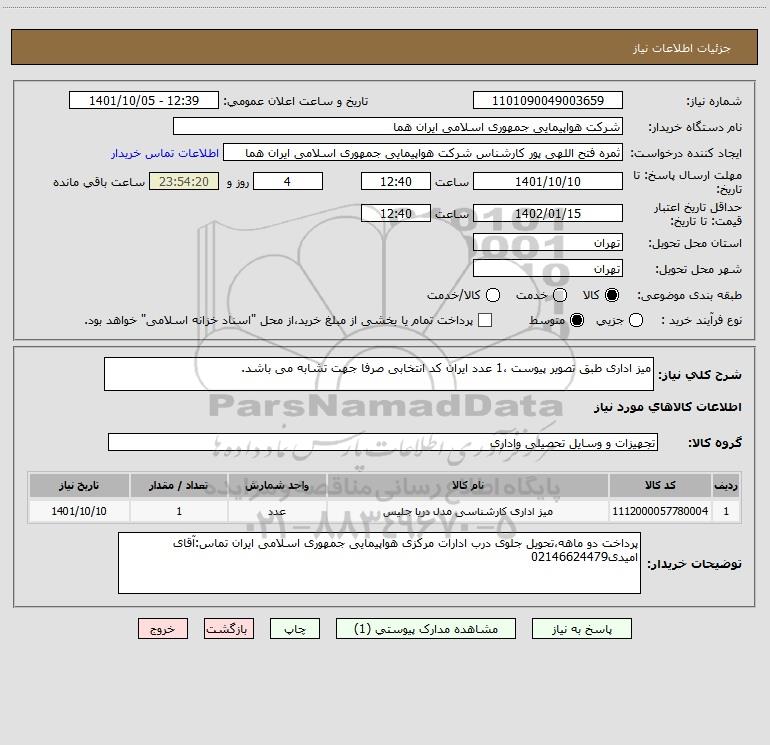 شرح کلی نیاز: میز اداری طبق تصویر پیوست ،1 عدد ایران کد انتخابی صرفا جهت تشابه می باشد.