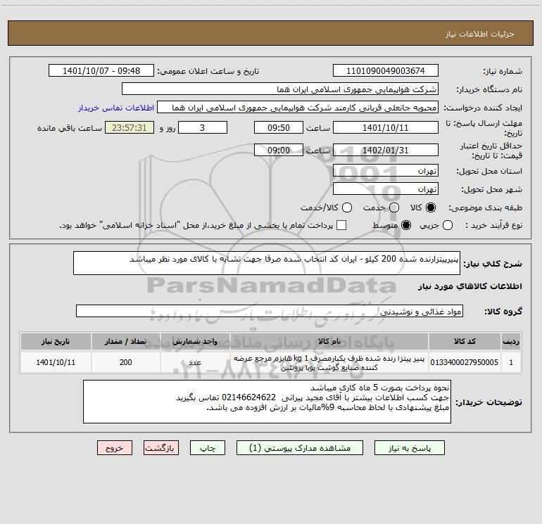 نام دستگاه خریدار:شرکت هواپیمایی جمهوری اسلامی ایران هما