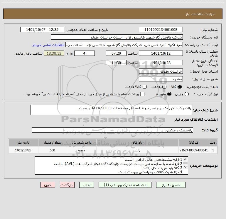 نام دستگاه خریدار:شرکت پالایش گاز شهید هاشمی نژاد استان خراسان رضوی