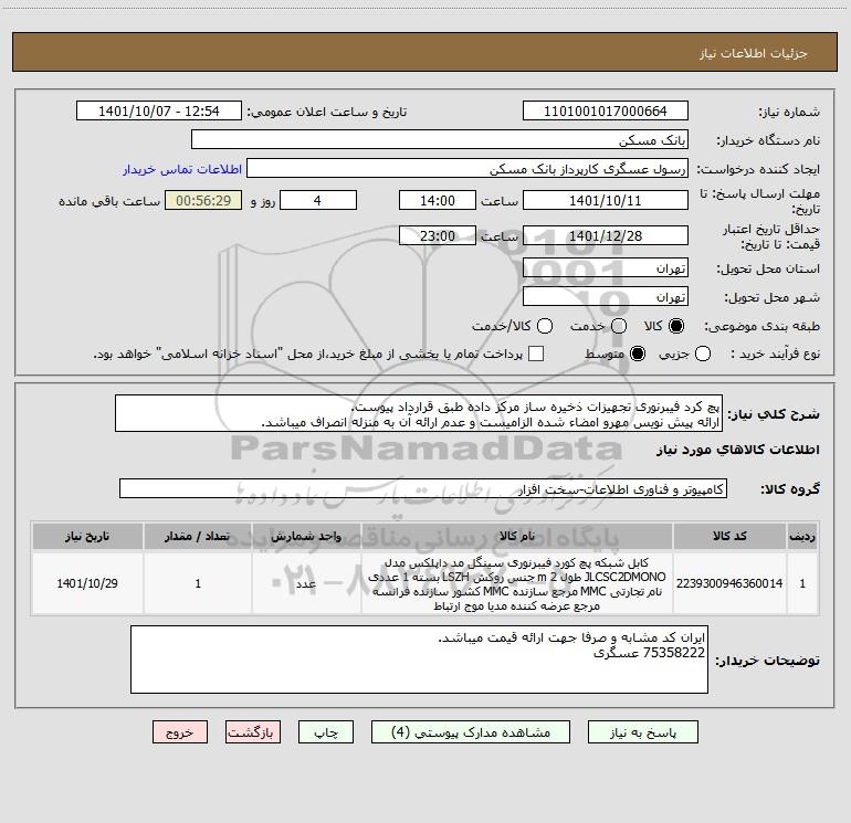 شرح کلی نیاز: پچ کرد فیبرنوری تجهیزات ذخیره ساز مرکز داده طبق قرارداد پیوست. ارائه پیش نویس مهرو امضاء شده الزامیست و عدم ارائه آن به منزله انصراف میباشد.