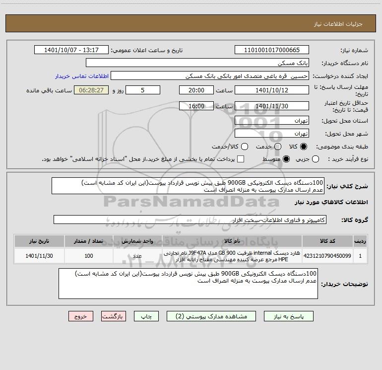 توضیحات خریدار:100دستگاه دیسک الکترونیکی 900GB طبق پیش نویس قرارداد پیوست(این ایران کد مشابه است) عدم ارسال مدارک پیوست به منزله انصراف است