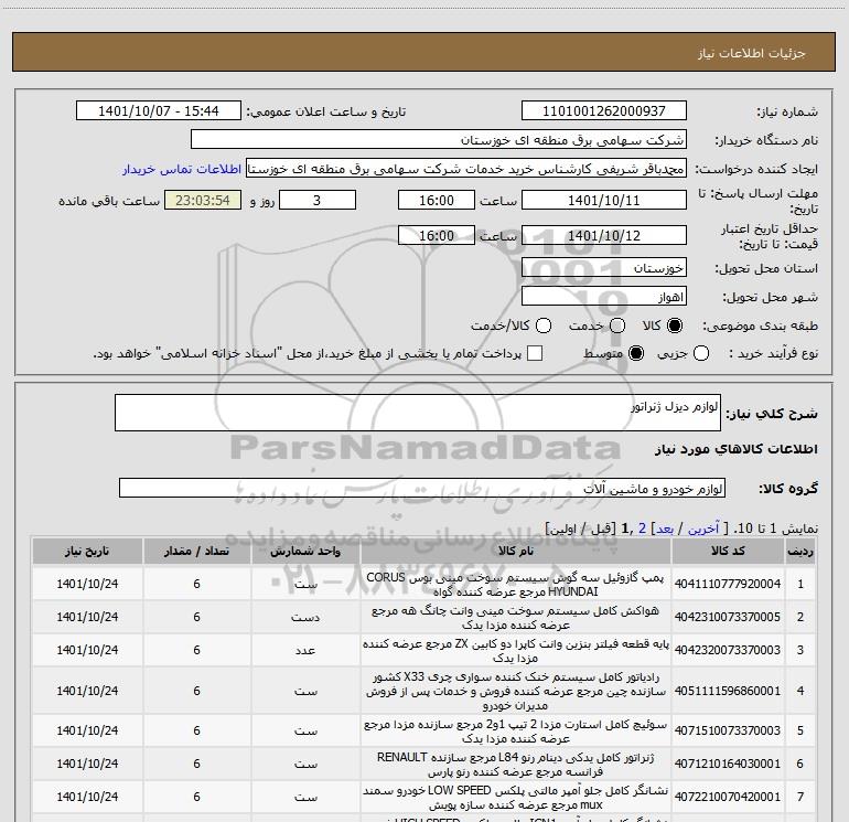 شرح کلی نیاز: لوازم دیزل ژنراتور
